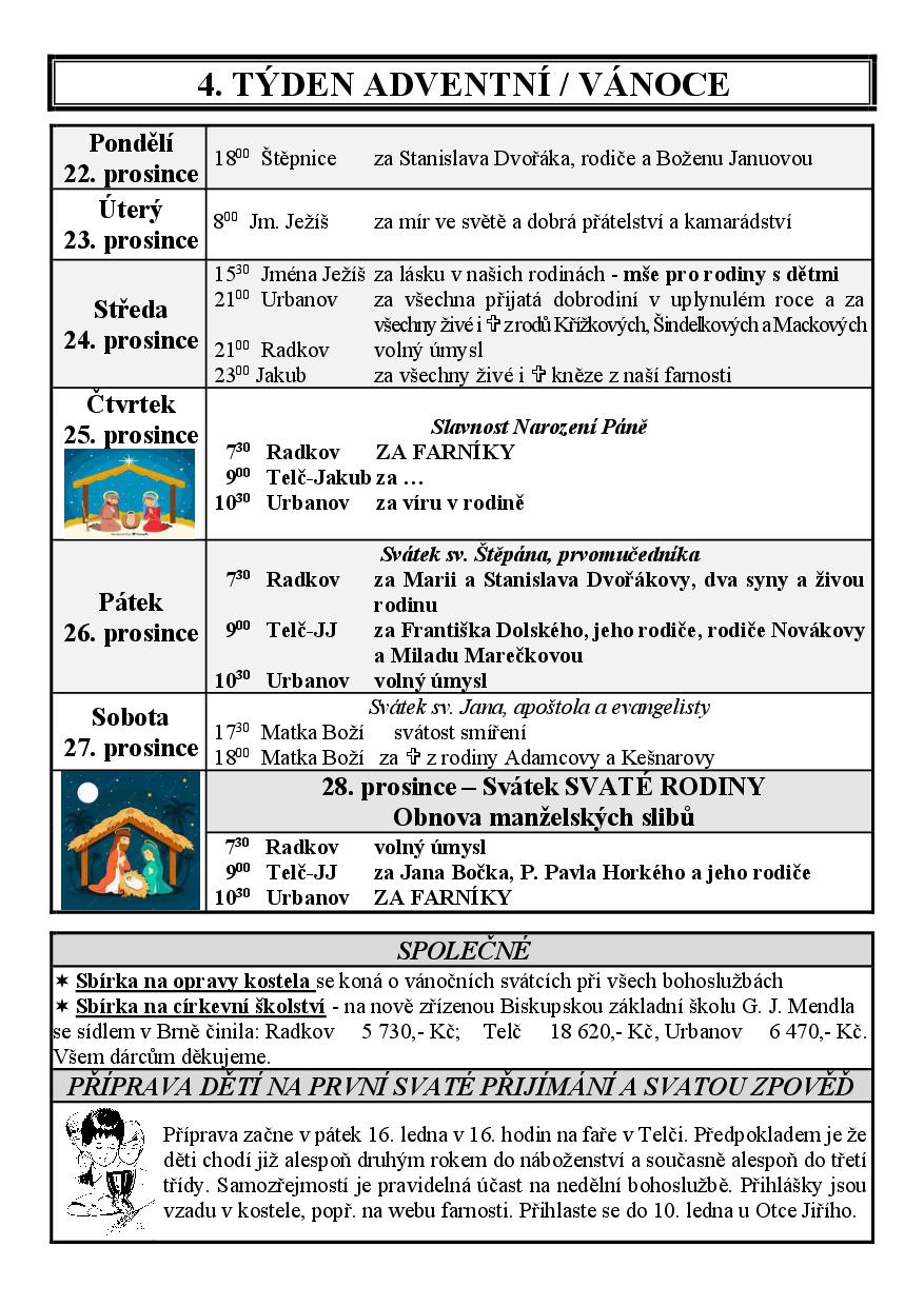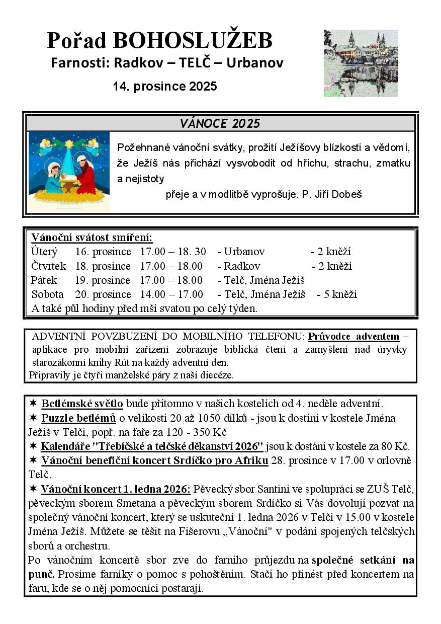 Pořad BOHOSLUŽEB o Vánocích – Radkov – TELČ – Urbanov
